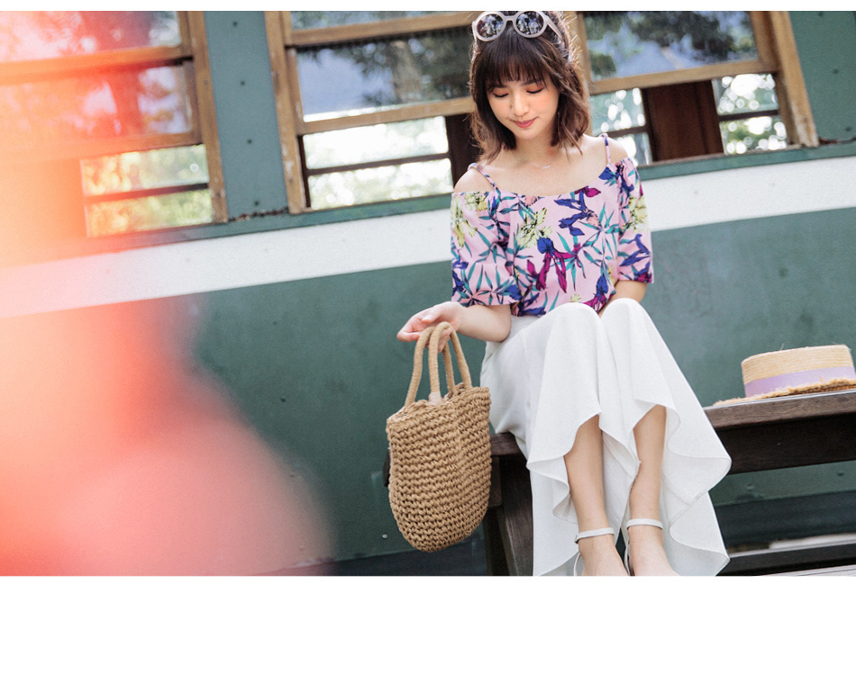 全長從袖拼接頂端量至下襬 微甜的底色搭配滿版枝葉印花, 打造可愛迷人的少女穿著~ 細肩帶及挖肩設計, 展現小性感的女人味注目感加分! ********************** 小提醒:肩帶可調 深 售價:379