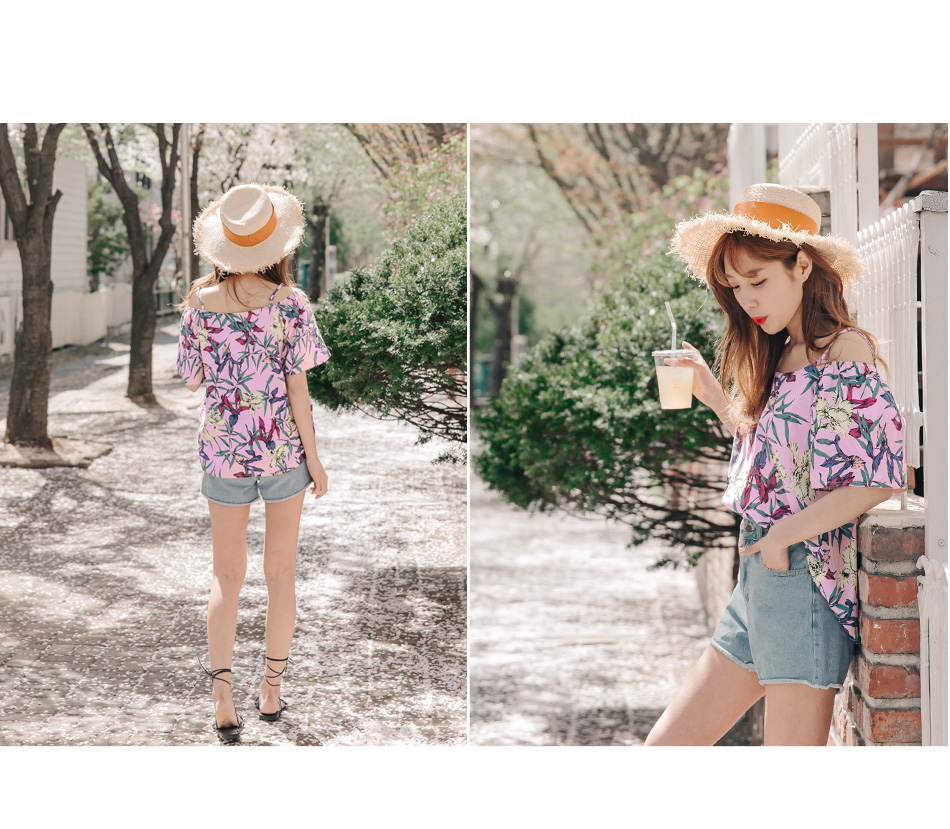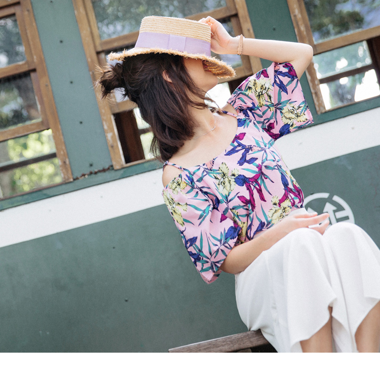 輕柔舒適的雪紡面料穿著親膚,V領口剪裁視覺上完美修飾小臉效果,穿出簡約的甜美風格~