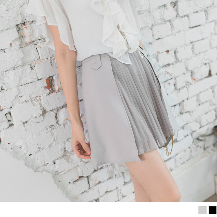 俐落的A字線條拼接百褶裙,時髦顯瘦 腰頭的造型褲耳展現獨特風格,隱藏式側拉鍊質感加分! ********************** 小提醒:有內裡,拉鍊可開 建議單獨洗滌,手洗或放洗衣袋洗最佳喔(勿 售價:449