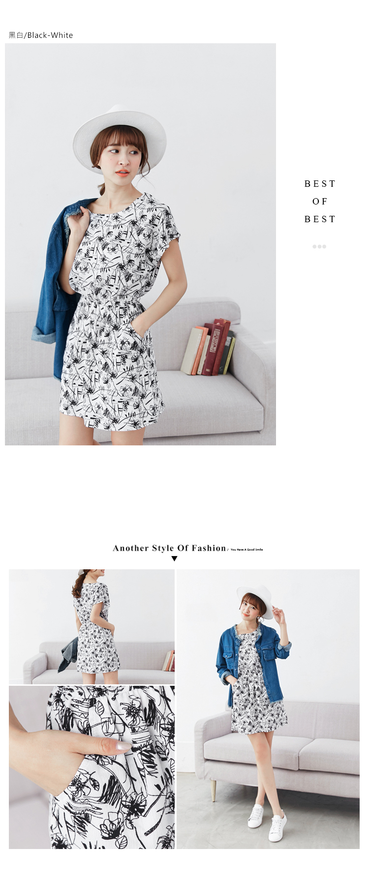 黑灰白簡約色調優雅且平衡滿版印花帶來的複雜感 縮腰設計突顯腰線,讓你的曲線更完美~ ********************** 小提醒: 有內裡,腰圍鬆緊,口袋為真 建議單獨洗滌,手洗或放洗衣袋洗最 售價:369