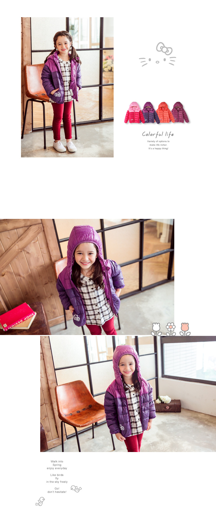 選用舒適羽絨填充面料,讓穿著更加溫暖自在~ 亮眼配色加入可愛印花點綴,讓小寶貝展現俏皮活潑的一面!! *********** 提醒您: 桃紅/亮紫色袖子印有logo印花.粉橘/紫紅色則沒有唷!請選購時 售價:1280